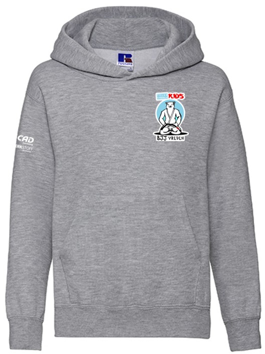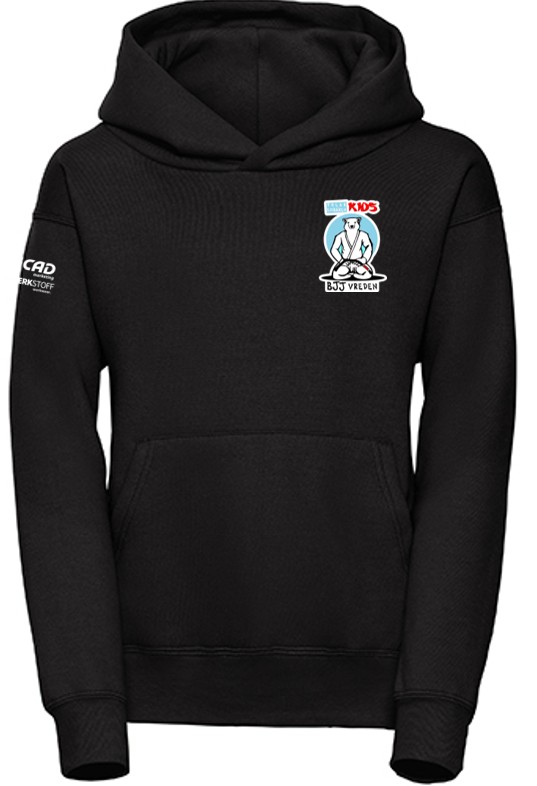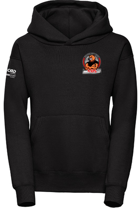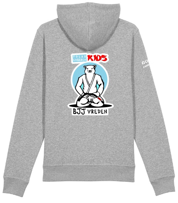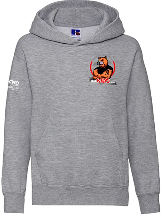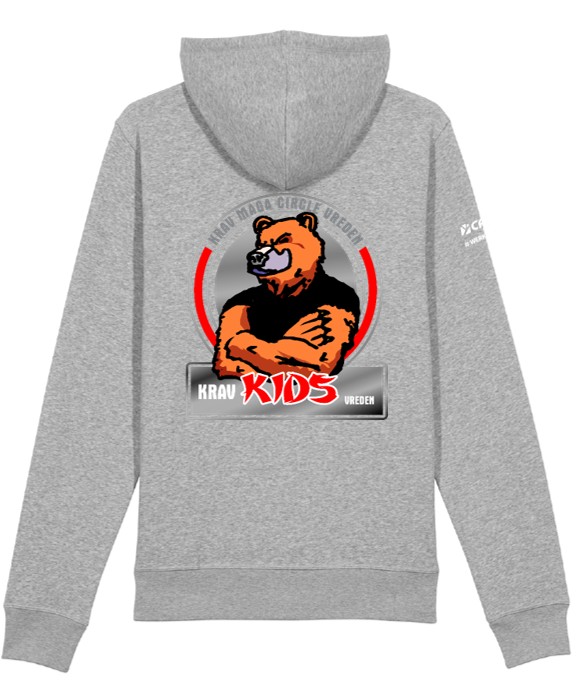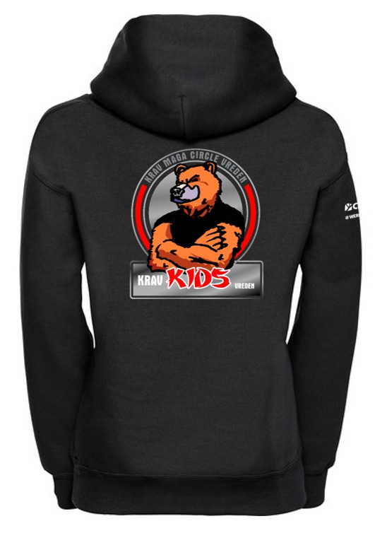 Zwei starke Logos zur Auswahl – Polareisbären, oder Krav Kids – hochwertig gedruckt auf einem coolen Hoodie, der Haltung zeigt