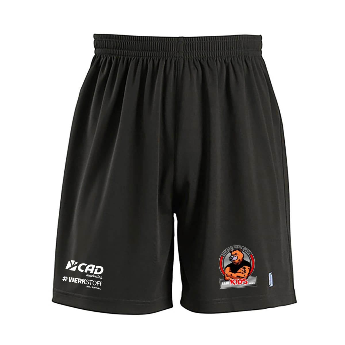 Zwei starke Logos zur Auswahl – Polareisbären, oder Krav Kids – gedruckt auf einer coolen Short, der Haltung zeigt